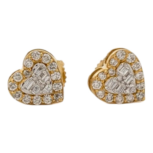 Embrace romance and elegance with our charming 10k Yellow Gold Heart Earrings, featuring 0.32 carats of dazzling diamonds. Meticulously crafted, these earrings exude sophistication and grace with their delicate heart-shaped design. The shimmering diamonds add a touch of sparkle and luxury to your ensemble, catching the light with every movement. Perfect for expressing love or adding a romantic touch to any outfit, these earrings are versatile accessories suitable for various occasions. Elevate your style with these exquisite earrings, radiating timeless beauty and impeccable craftsmanship.